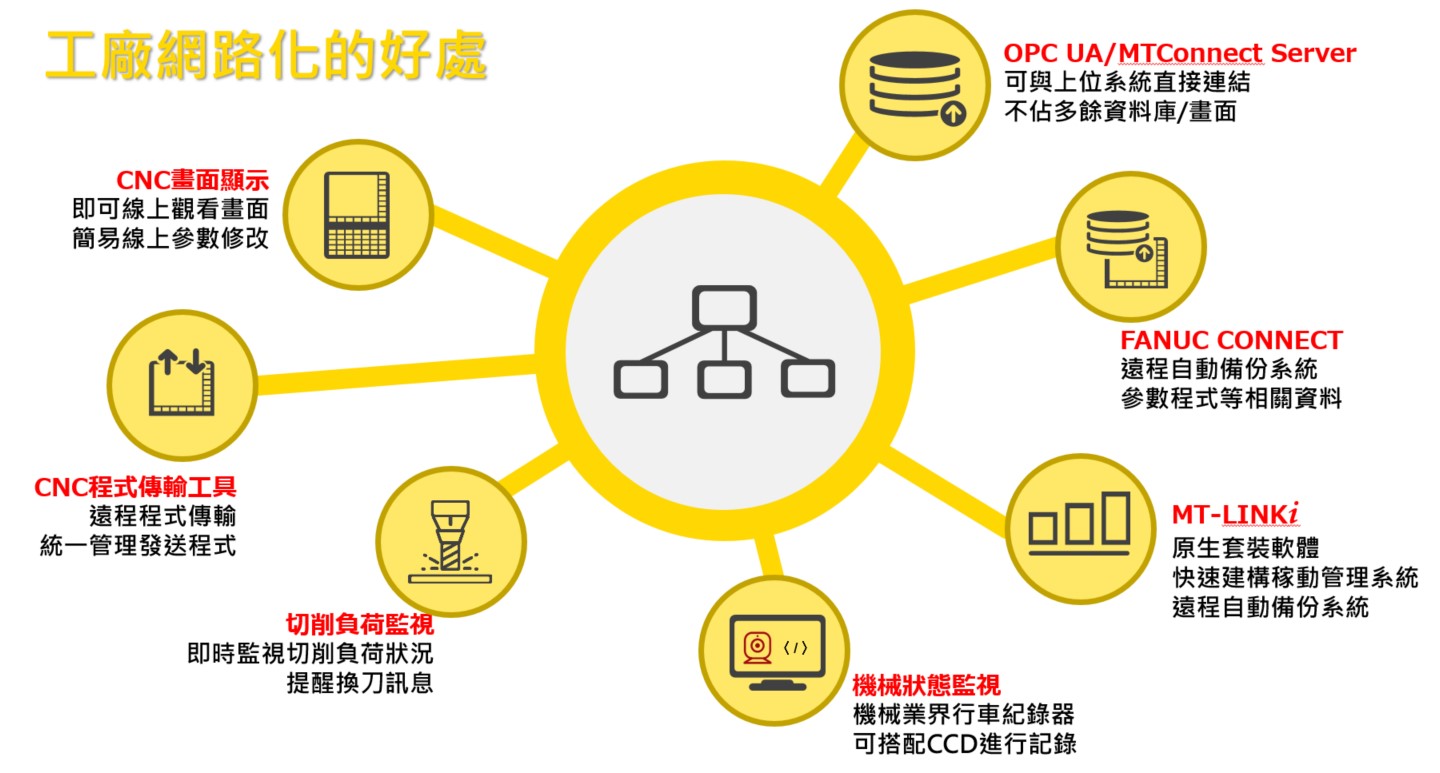 對於製造現場端,工具機製造商除了提供單機的販賣外,來自於END USER的要求中,工業網路或是機聯網的需求也逐年增加,因此如果能掌握此項技術,來自於客戶的相關需求也能順利對應。再者,如果要擴展此項業務,在CNC上如應用這樣的技術為必備的技能。FANUC提供了各式各樣相關工業網路或是機聯網機能,本課程將指導您如何應用這些技術。如果您想提升自己的整合能力,此課程內容將不容錯過。