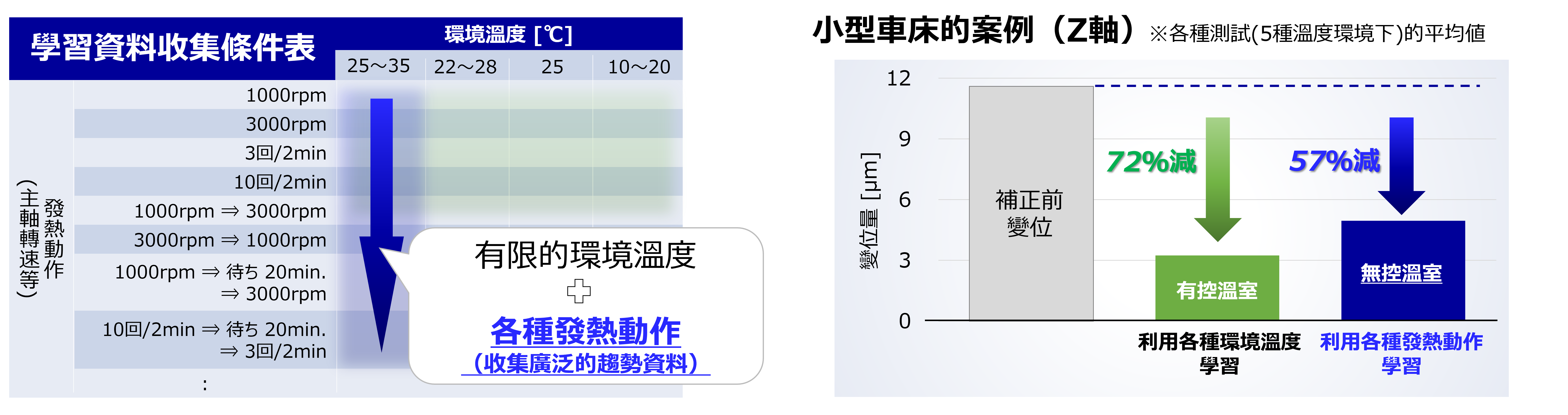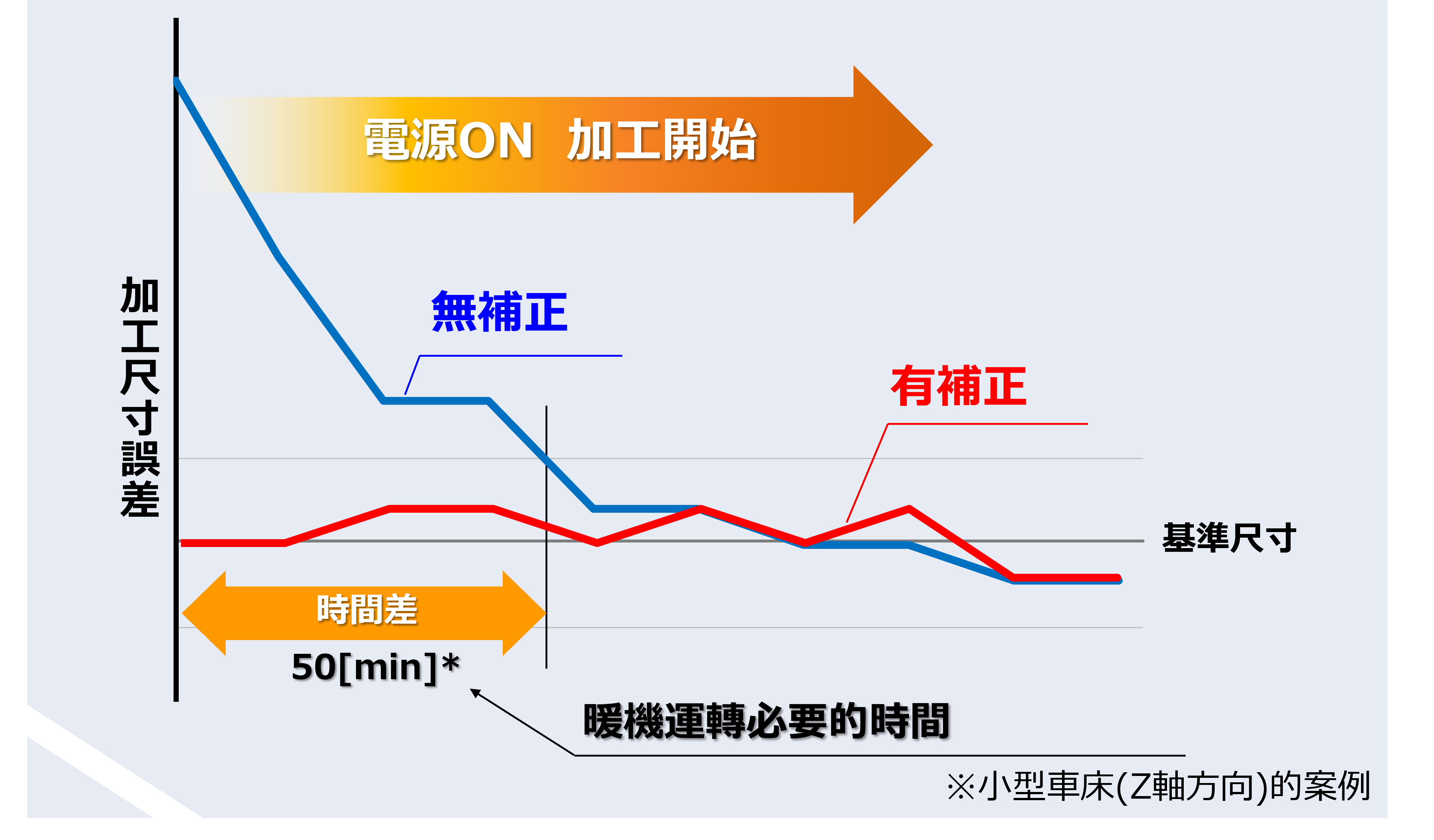 不使用控溫室即可應用 特點 即使不使用控溫室,通過收集學習資料、製作補正模型,也可實現實用的補正性能(小型車床的案例)