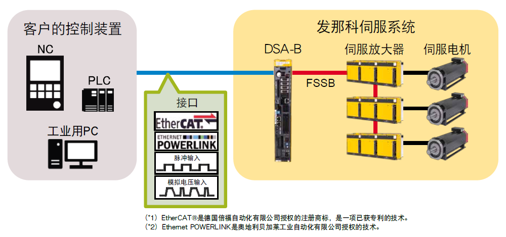 透過客戶的控制裝置(EX:工業用PC)來驅動發那科製造的伺服馬達,適用於射出成型機、沖壓機等