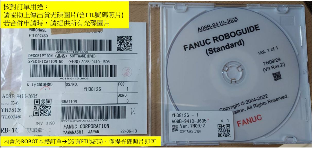 註:購買多套ROBOGUIDE時(要合併申請),