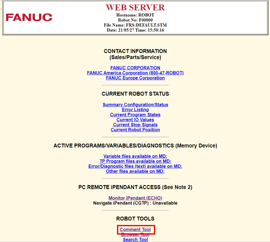 *若是較舊的控制器機種時, 進入 WEB SERVER 時,找到Comment Tool並點選