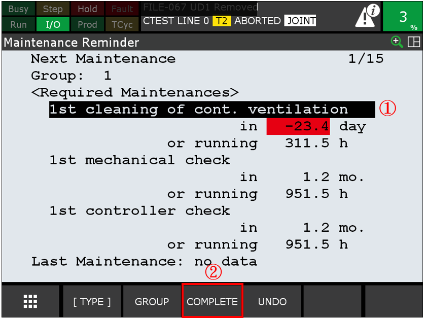出現下圖後, 點選 F3.DETAIL , 即可查看全部維護保養項目